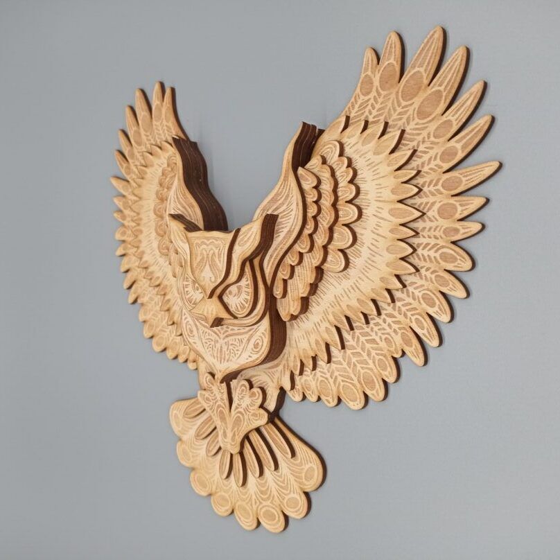 Son effet 3D donne des reliefs et des détails qui confèrent à ce hibou une vrai présence dans votre habitat.